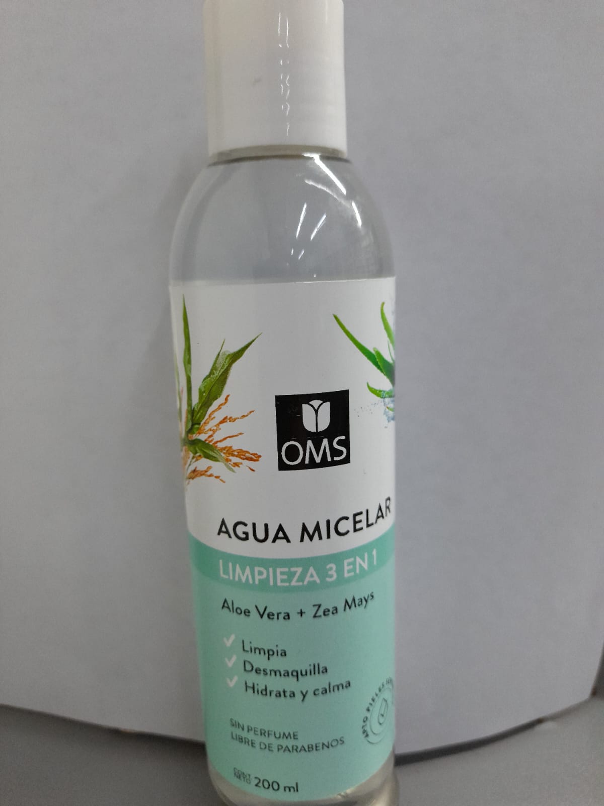 El agua limpiadora de OMS con micelas naturales logra eliminar las impurezas y el maquillaje, sin irritar la piel. Su formula con Aloe Vera y Zea Mays calma la piel y deja el rostro suave e hidratado. Recomendado aun en pieles sensibles.