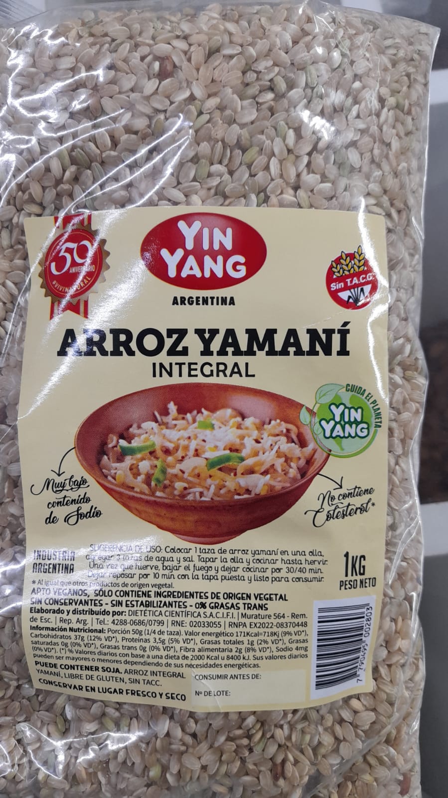 El arroz yamaní es una variedad de arroz integral originaria de Japón. Crece en climas templados y fríos, y se caracteriza por ser de grano corto, resistente y de color dorado. Al ser degustado, el arroz yamaní cocido posee una textura suave, con un cierto sabor dulce. Sin TACC. Apto celíaco.