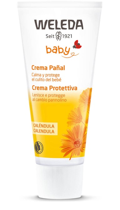 La caléndula orgánica tiene una propiedad excepcional utilizada en nuestros productos de la Línea de Caléndula para el cuidado del bebé: es un antiinflamatorio natural. Para crear la Crema Pañal tomamos extractos de caléndula y manzanilla y los mezclamos con almendras dulces y aceite de sésamo, lo que crea una crema rica para reducir el enrojecimiento y cuidar la delicada área del pañal. La lanolina y el óxido de cinc inocuos para la piel proporcionan una barrera contra la humedad.