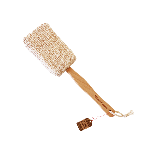 Tomar por el mango, humedecer ambos lados y frotar por la espalda, brazos y piernas. Luego de usar enjuagar con abundante agua para evitar que queden residuos. Guardar siempre colgado en un lugar fresco y ventilado