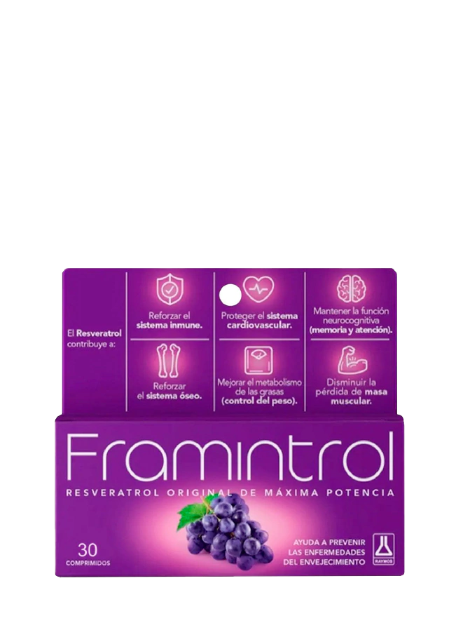 FRAMINTROL es un complemento de la alimentación, elaborado en base a RESVERATROL Y VITAMINA E NATURAL.