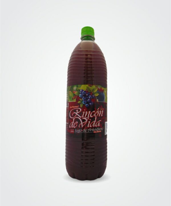 Jugo elaborado a base de arándanos limpios, sanos, sin tallos ni hojas; con agregado de agua, endulzado con Stevia y fortificado con Vitamina C. Producto para consumo directo.