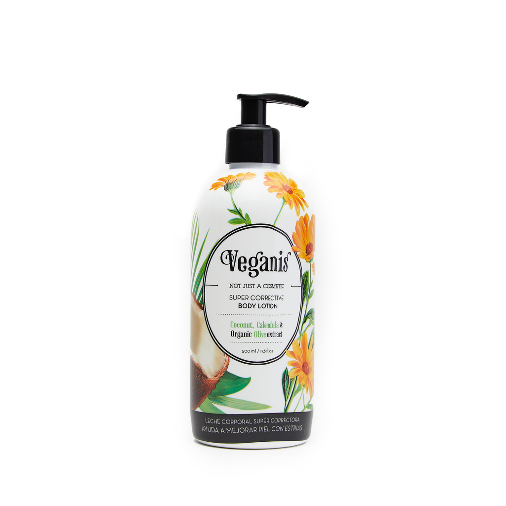 La LECHE SUPER-CORRECTORA VEGANIS fue desarrollada para ayudar a corregir y reducir las apariencias de las marcas en la piel. La CALÉNDULA posee propiedades emolientes lo cual ayuda a mejorar naturalmente el aspecto de la piel, incluso en áreas con estrías. El COCO posee propiedades que promueven la regener- ación y rehidratación de los tejidos, ayudando y complementando las propiedades correctoras de la CALÉNDULA. El extracto Orgánico de OLIVA certificado ayuda a suavizar y reforzar la hidrat- ación de la piel de manera natural.